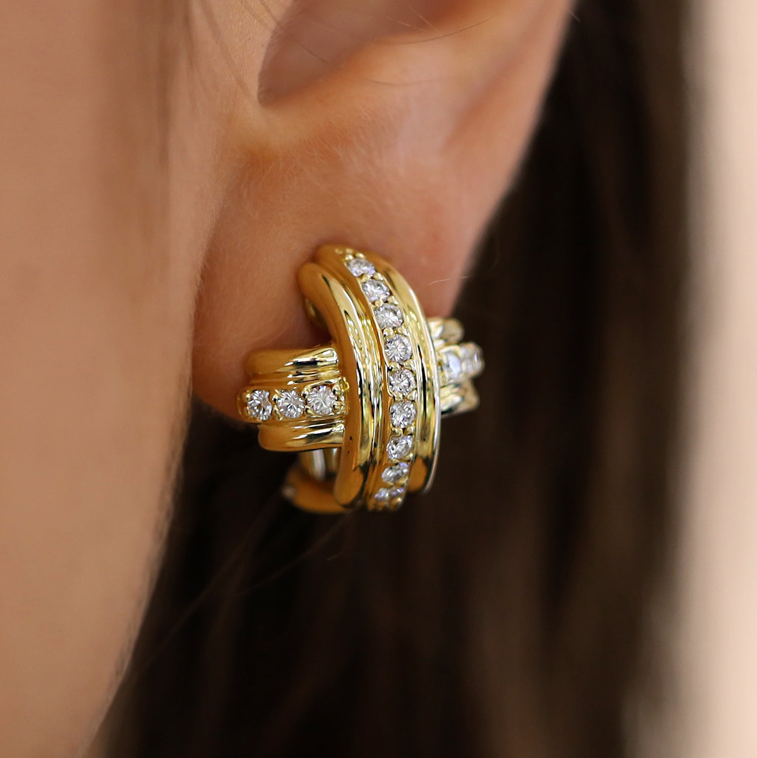 Vintage Tiffany & Co Diamond Signature "X" 18k Gold Earrings Retired Design