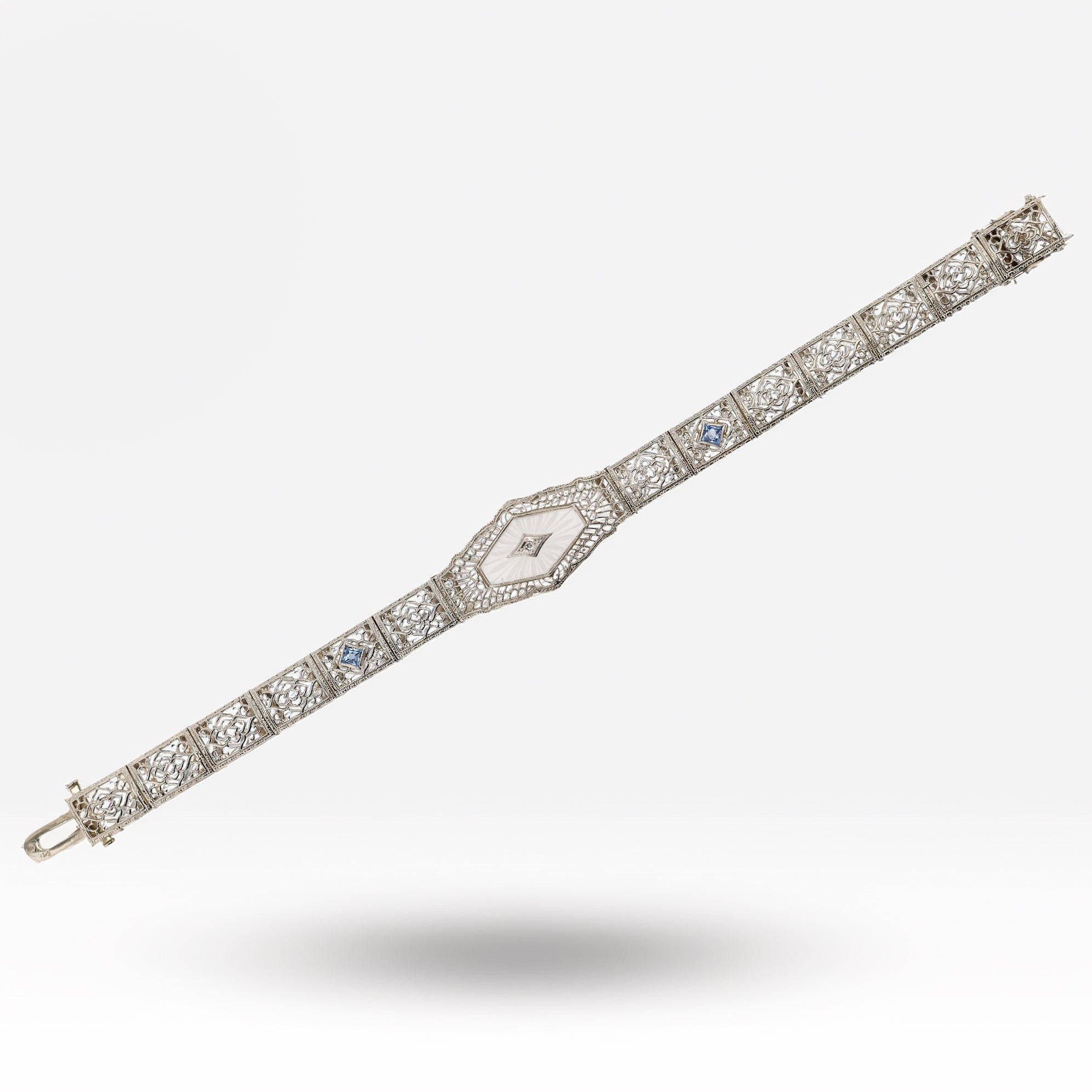 Art Deco Filigree and Diamond 14k White Gold Bracelet
