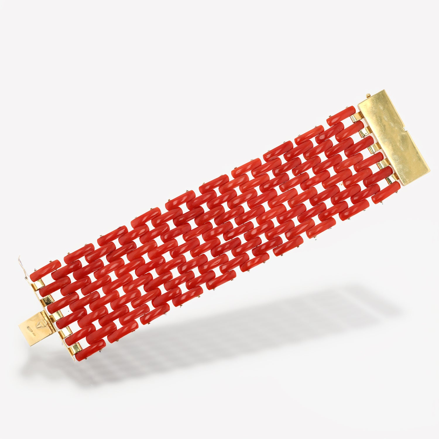 Retro Red Coral and 18k Gold Wide Tank Bracelet