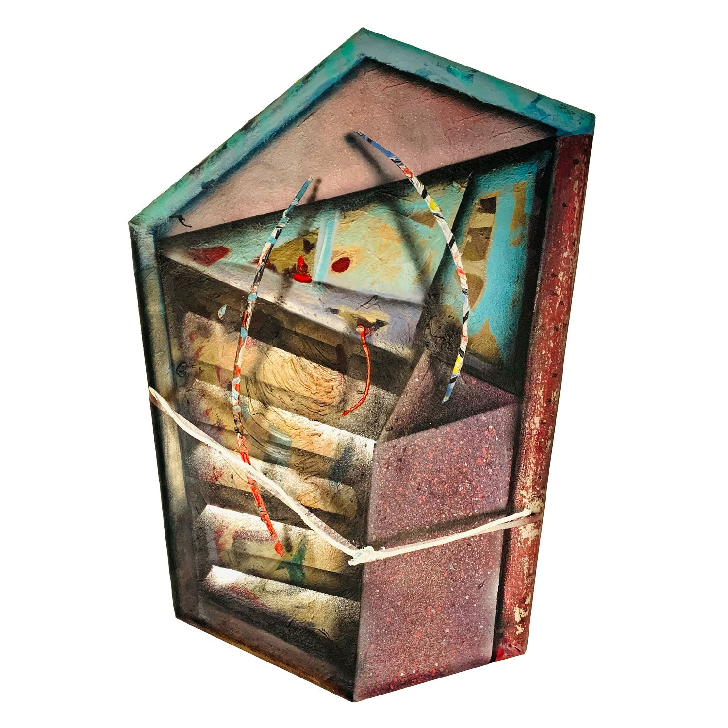 A thought-provoking expression of native Chumash culture, from renowned sculptor, Michael Irwin, circa 1987. Irwin's background provided him agency to seamlessly merge sculpture with 2 dimensional paintings via shaped canvases, presenting a captivating assemblage. Experience this unique interpretation at Belrose Estate Jewelers' boutique, through 2024.