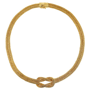 An impressive necklace, fabricated of rich, high karat 18k gold, the woven Byzantine rope is braided into a timeless Hercules knot. A symbol of love, commitment and protection, this would make for a marvelous wedding gift. Vintage 1970s with a timeless design, this heirloom was acquired from a significant private estate jewelry collection in Montecito, California. Matching earrings are available in a separate listing.